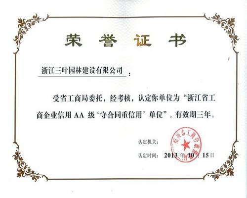 近日,公司被紹興市工商行政管理局評(píng)為”浙江省工商企業(yè)信用AA級(jí)守合同重信用單位。這是我司繼2007年以來已經(jīng)連續(xù)六年獲得此信譽(yù)。