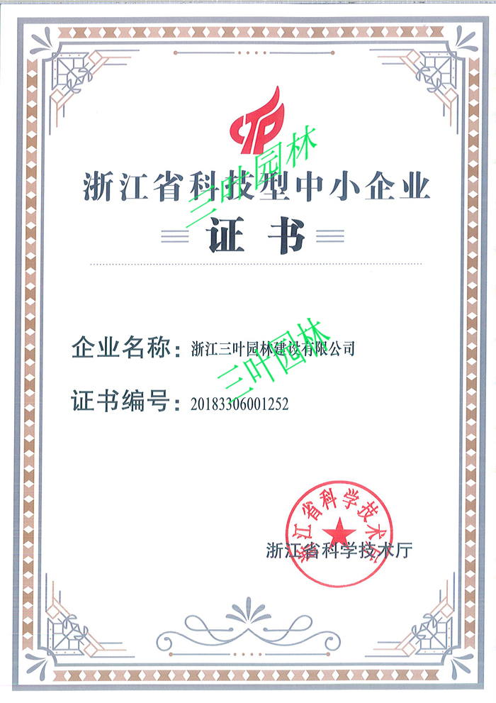 近日,三葉園林被評為“浙江省科技型中小企業(yè)”。為積極推進創(chuàng)新創(chuàng)業(yè),加快培育科技型中小企業(yè),省科技廳下發(fā)了«浙江省科技型中小企業(yè)認定管理辦法»,主要針對從事高新技術及其產品的研制、開發(fā)、生產、銷售和服務的中小型企業(yè),把是否擁有自主知識產權、專有技術或先進知識作為評審認定的核心指標。
