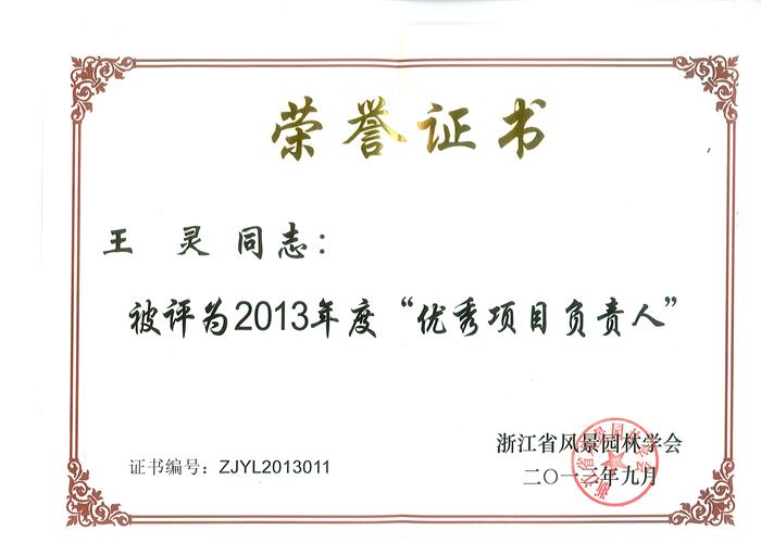 近日,根據(jù)《關于開展2013年度浙江省“優(yōu)秀園林工程”獎評審工作的通知》及《關于2013年度浙江省“優(yōu)秀園林工程獎”分設獎項申報評審的補充通知》“2013年度浙江省優(yōu)秀園林工程”金獎項目獲得企業(yè)填報和學會審核,授予王靈同志為2013年度浙江省風景園林學會“優(yōu)秀項目負責人”稱號,現(xiàn)予公布表彰。希望王靈同志,再接再厲,進一步提升項目管理水平,確保施工工程質(zhì)量,創(chuàng)建更多的園林精品項目,為園林綠化事業(yè)作出更大貢獻。