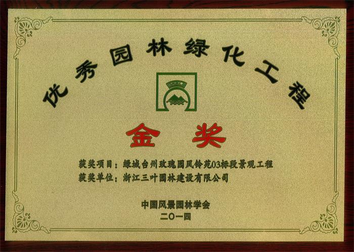- 金秋十月、收獲獎項,三葉園林喜獲2014年度中國風景園林學會"優(yōu)秀園林工程"金獎