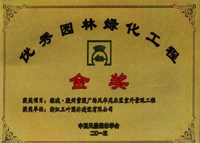 - 三葉園林喜獲"2015年度中國風(fēng)景園林學(xué)會優(yōu)秀園林綠化工程金獎"
