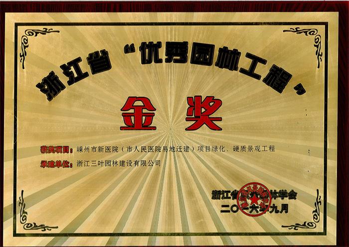 12月28日,由浙江省風景園林學會舉辦的第六屆“園林人居”論壇暨2016年“優(yōu)秀園林工程”獎頒獎大會在杭州之江飯店順利舉行,會上省建設廳、城建辦、省風景園林學會領導等作了重要講話,并宣讀表彰了“2016年浙江省優(yōu)秀園林工程獎獲獎項目的通知”和“2016年度浙江省風景園林學會優(yōu)秀項目負責人名單的通知”。全省共有218個項目分別獲金、銀、銅三個獎項,授予141位同志“獲優(yōu)秀項目負責人”的稱號,其中三葉園林承建的嵊州市新醫(yī)院(市人民醫(yī)院易地遷建)項目綠化、硬質景觀工程獲得省“優(yōu)秀園林工程”金獎,吳惠芬同志獲評“優(yōu)秀項目負責人”。